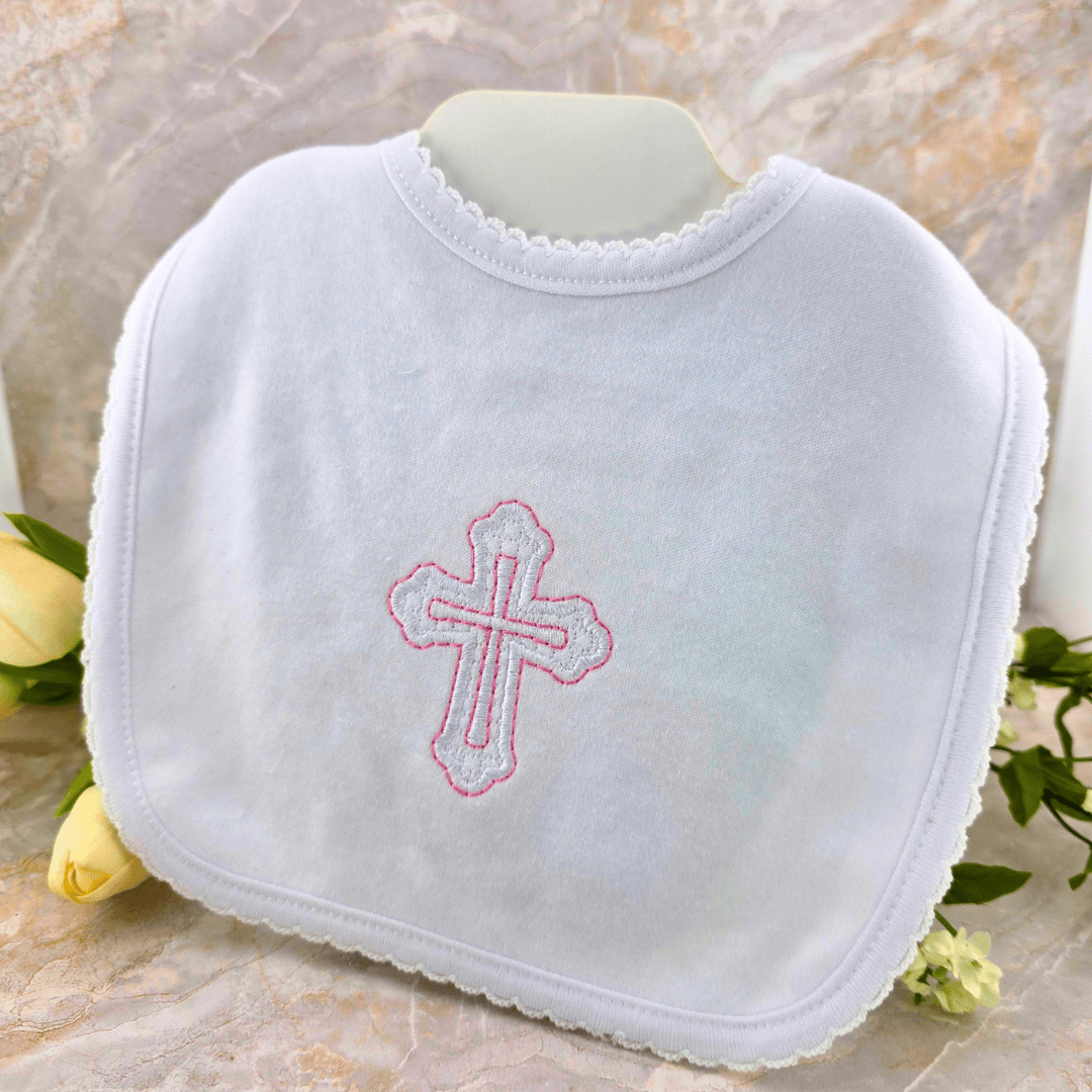 A precious keepsake that combines practicality with devotion, this embroidered bib is a simple yet heartfelt way to surround your baby with faith from the very beginning.